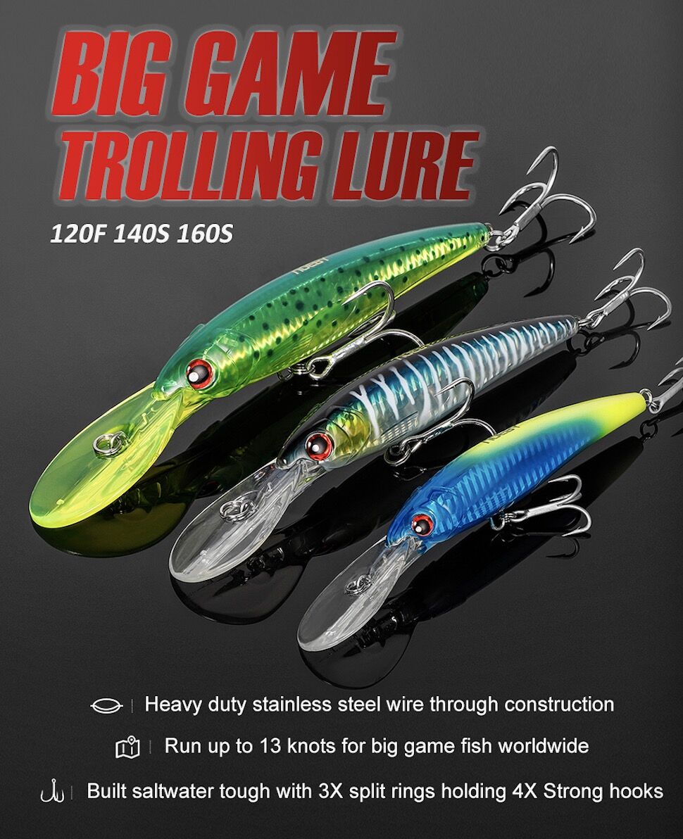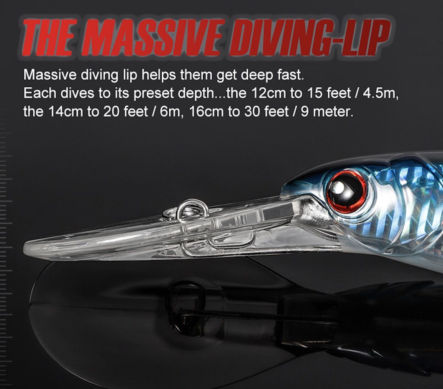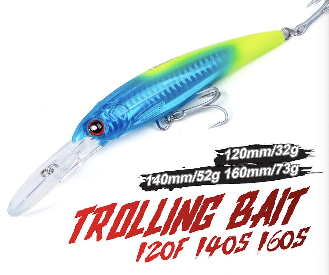 trolling minnow, deep diving lure, saltwater trolling lure, Spanish mackerel lure, tuna trolling bait, grouper lure, heavy duty big lip minnow, offshore trolling bait, deep diving fishing lure, long trolling minnow