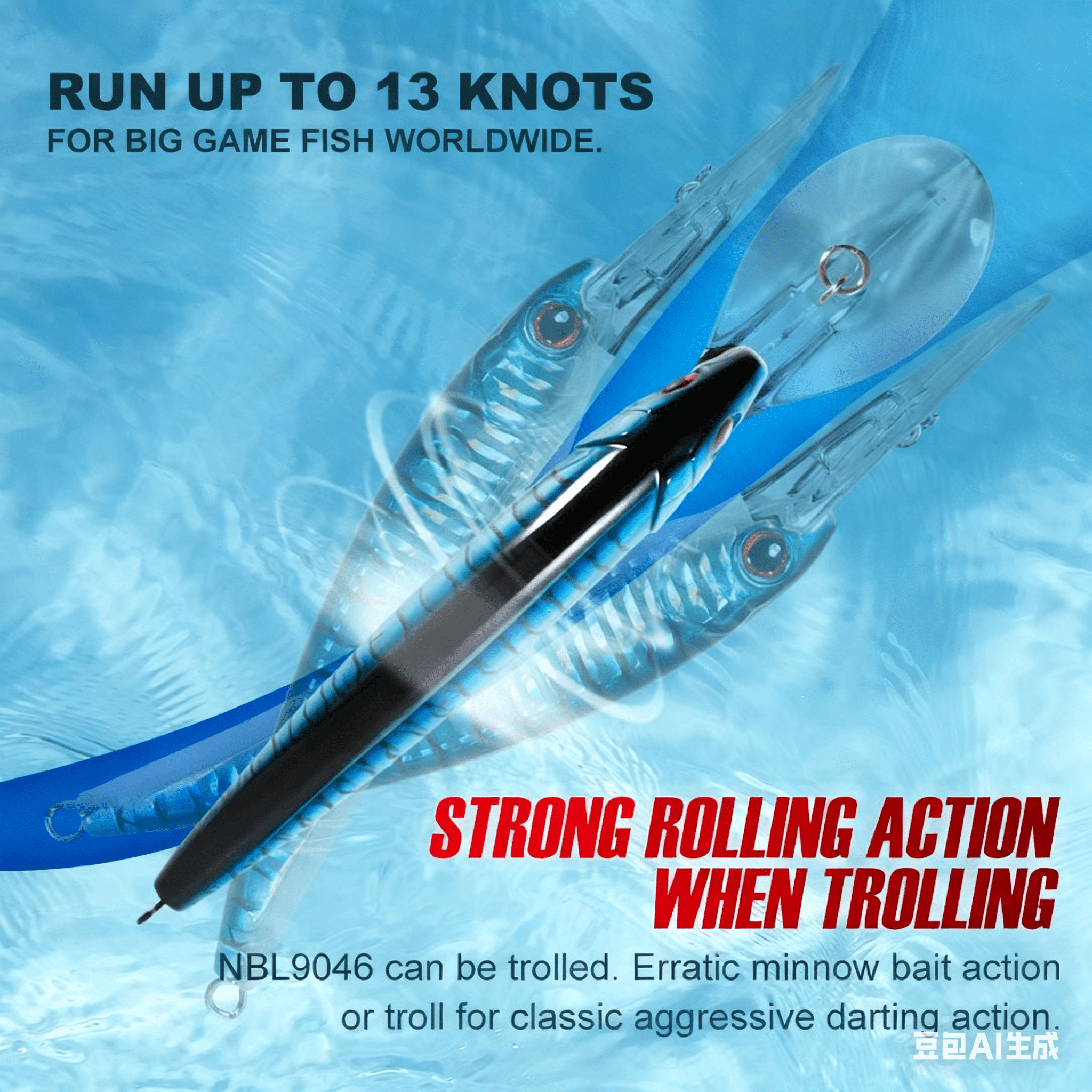 The 9046 Trolling Minnow is engineered for anglers who demand maximum diving depth, durability, and irresistible swimming action. Featuring an extra-strong oversized diving lip, this lure dives deep quickly and maintains excellent stability, making it ideal for trolling applications in both freshwater and saltwater.