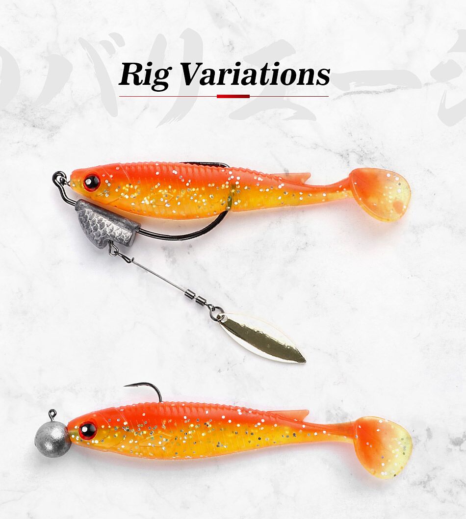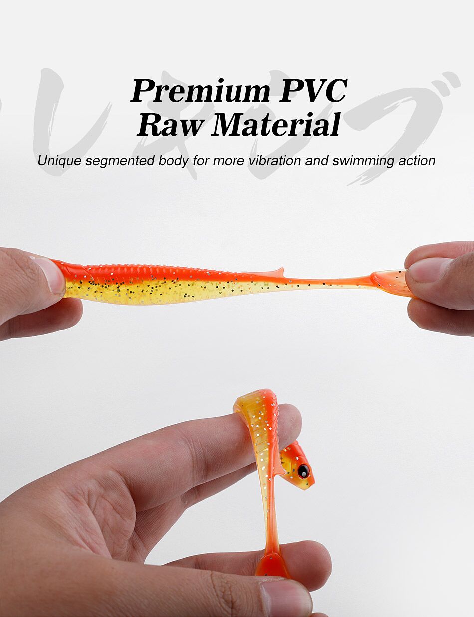 4″ soft swimbait featuring 3D lifelike fish eyes, realistic body profile, and multiple color options. Infused with a strong attractant that keeps the lure in the fish’s mouth for up to 18 seconds. Suitable for all water layers, especially deep-water fishing. Packed 4 pcs per bag.