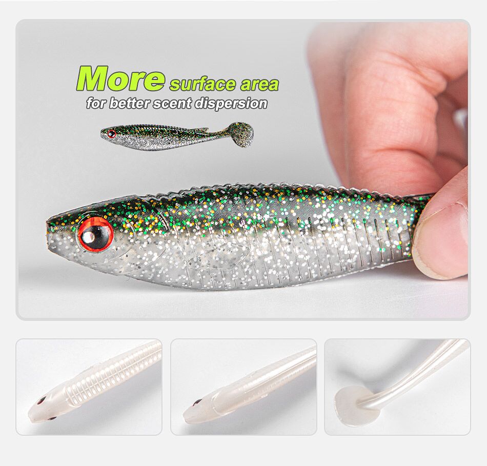Enhanced with a unique fish-attracting scent, this soft lure encourages fish to hold on longer—up to 18 seconds—greatly increasing your hookup rate. Its versatile design makes it suitable for all water layers, especially effective for deep-water fishing where subtle action and realism are key.